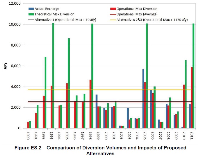 Figure ES.2 Comparison of Diversion Volumes and Impacts of Proposed.