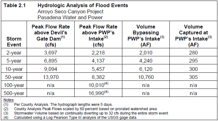 Table 2.1 Hydrologic Analysis of Flood Events
