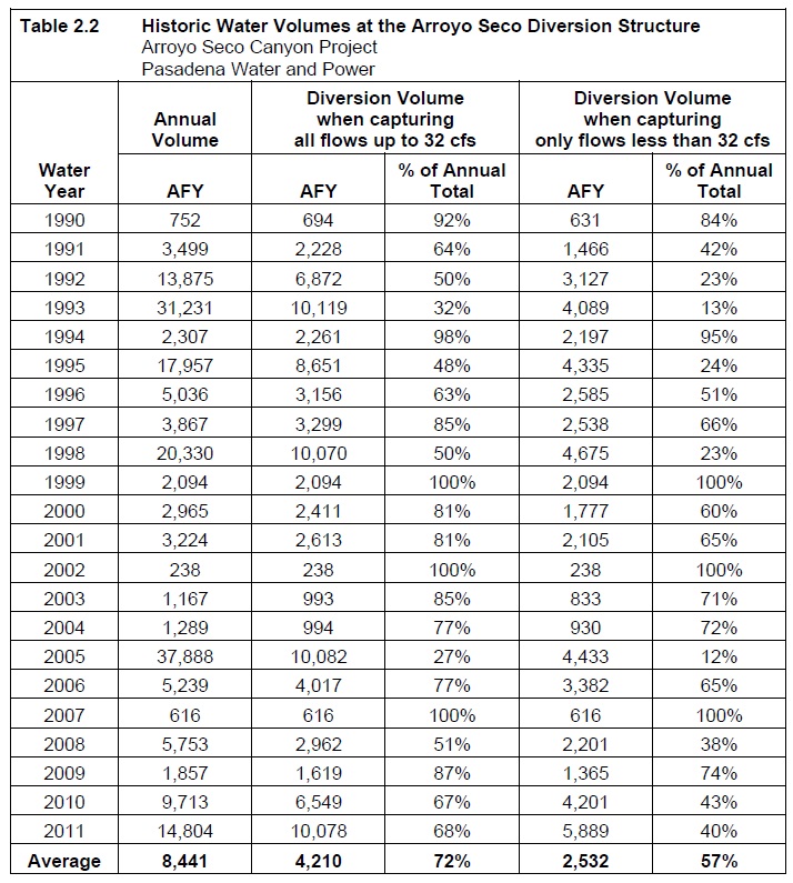 Table 2.2 Historic Water Volumes at the Arroyo Seco Diversion Structure