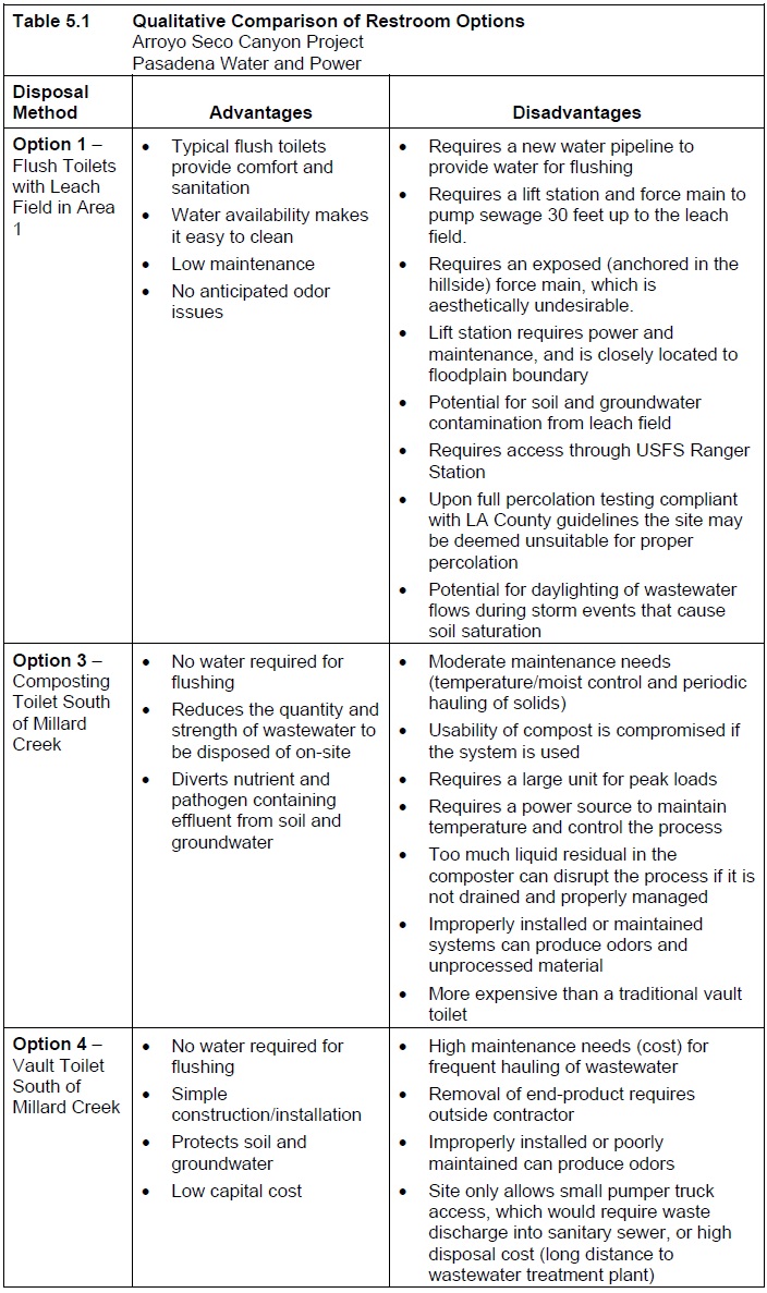 Table 5.1 Qualitative Comparison of Restroom Options
