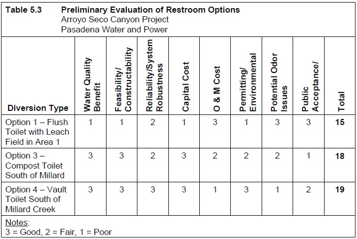 Table 5.3 Preliminary Evaluation of Restroom Options