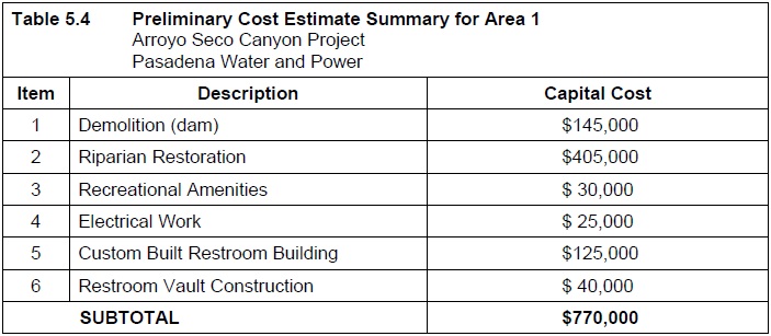 Table 5.4 Preliminary Cost Estimate Summary for Area 1