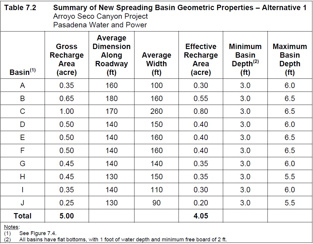 Table 7.1 Existing Spreading Basin Capacity Analysis